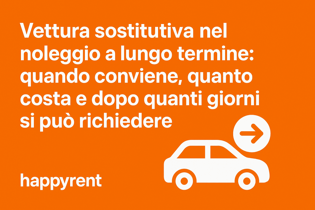 In termini di costi, la vettura sostitutiva non è quasi mai inclusa nei canoni base, perché molte società preferiscono proporre un prezzo mensile più competitivo rinunciando a questo servizio. Tuttavia, può essere aggiunta come opzione con un costo molto contenuto: parliamo spesso di poche decine di euro al mese. Un piccolo investimento che ti permette di non rimanere mai senza auto e di avere sempre garantita la mobilità. Le condizioni possono variare a seconda dell’operatore e del momento: i dati riportati sono esempi indicativi che verranno sempre confermati in fase di consulenza personalizzata con Happyrent, così saprai esattamente cosa è incluso e cosa no.